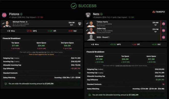 美媒建议活塞可以就小波特,向篮网报价哈里斯(2663万美元,合同年)+艾维(1011万美元,合同年)+一个选秀权,也许便能大功告成。
