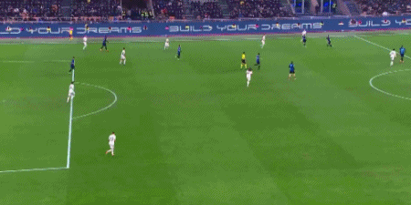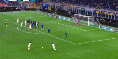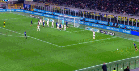 第9分钟,迪马尔科开出任意球,劳塔罗禁区头球顶高